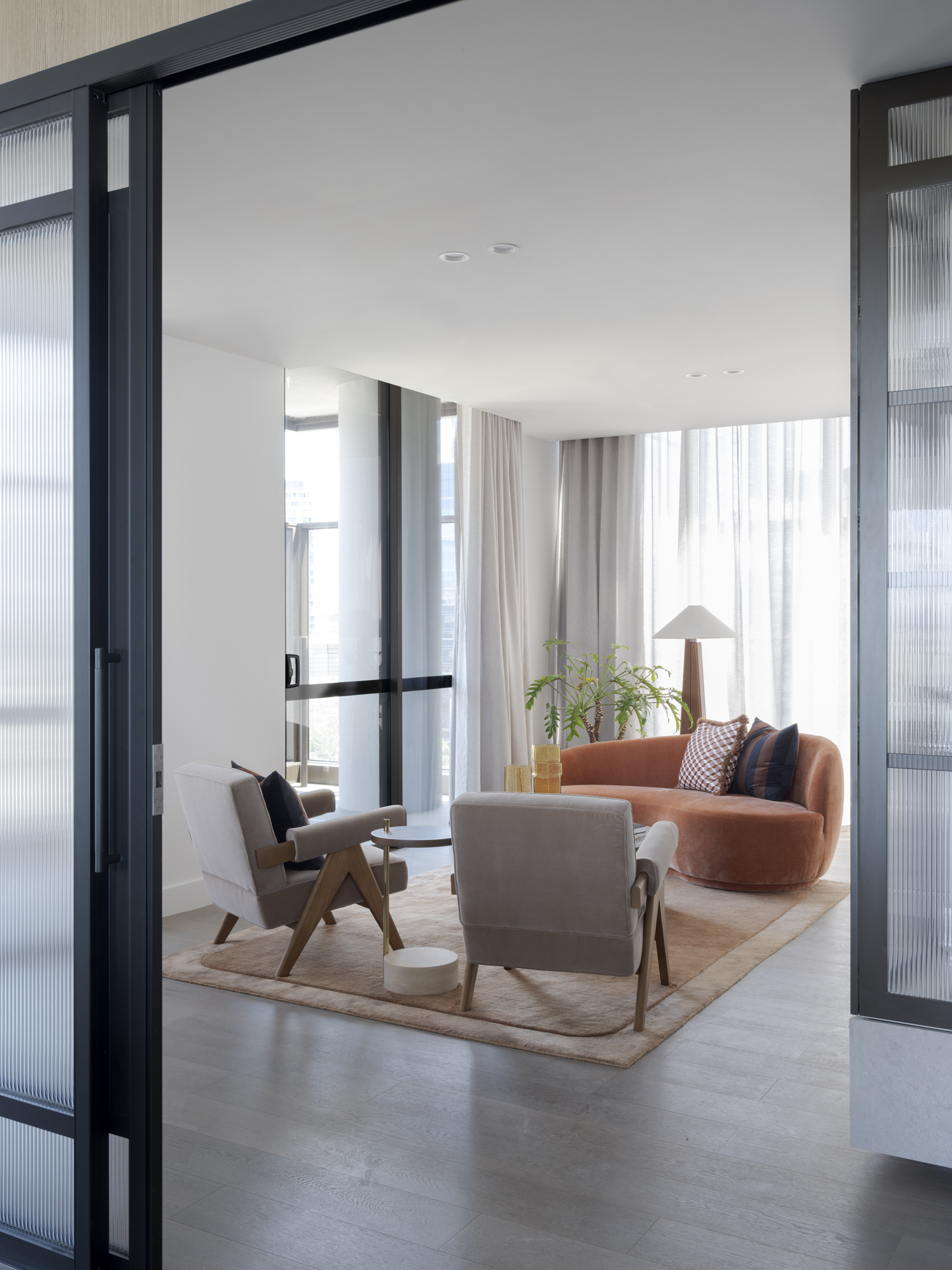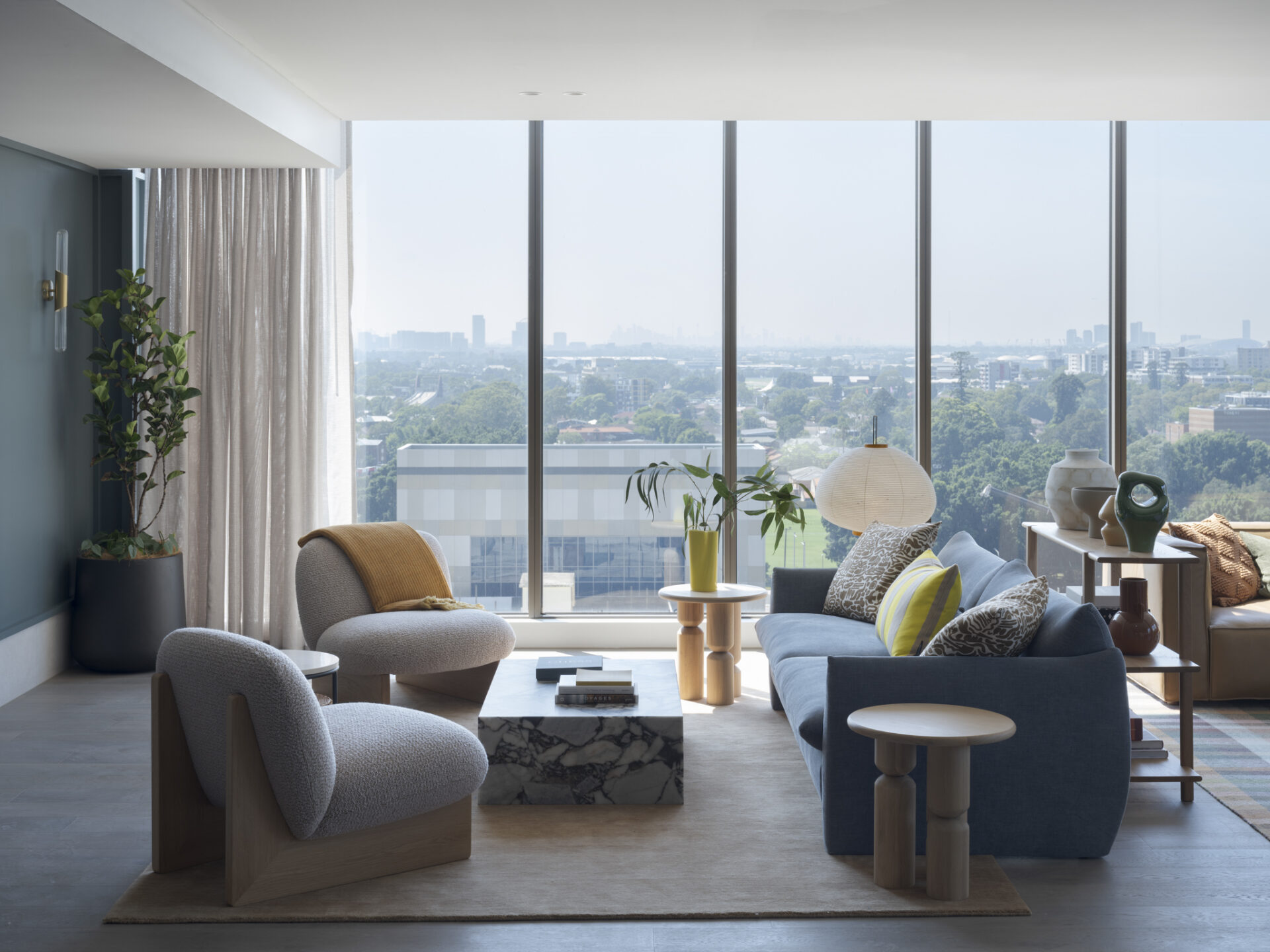 The tower balances vertical expression with moments of relief. Sky terraces carve through the form to soften its mass while framing expansive views toward the city and the Blue Mountains. Conceived for the evolving build-to-rent market, each vertical break represents where we have provided amenity and common spaces throughout the tower, activating a strong sense of community amongst residents.