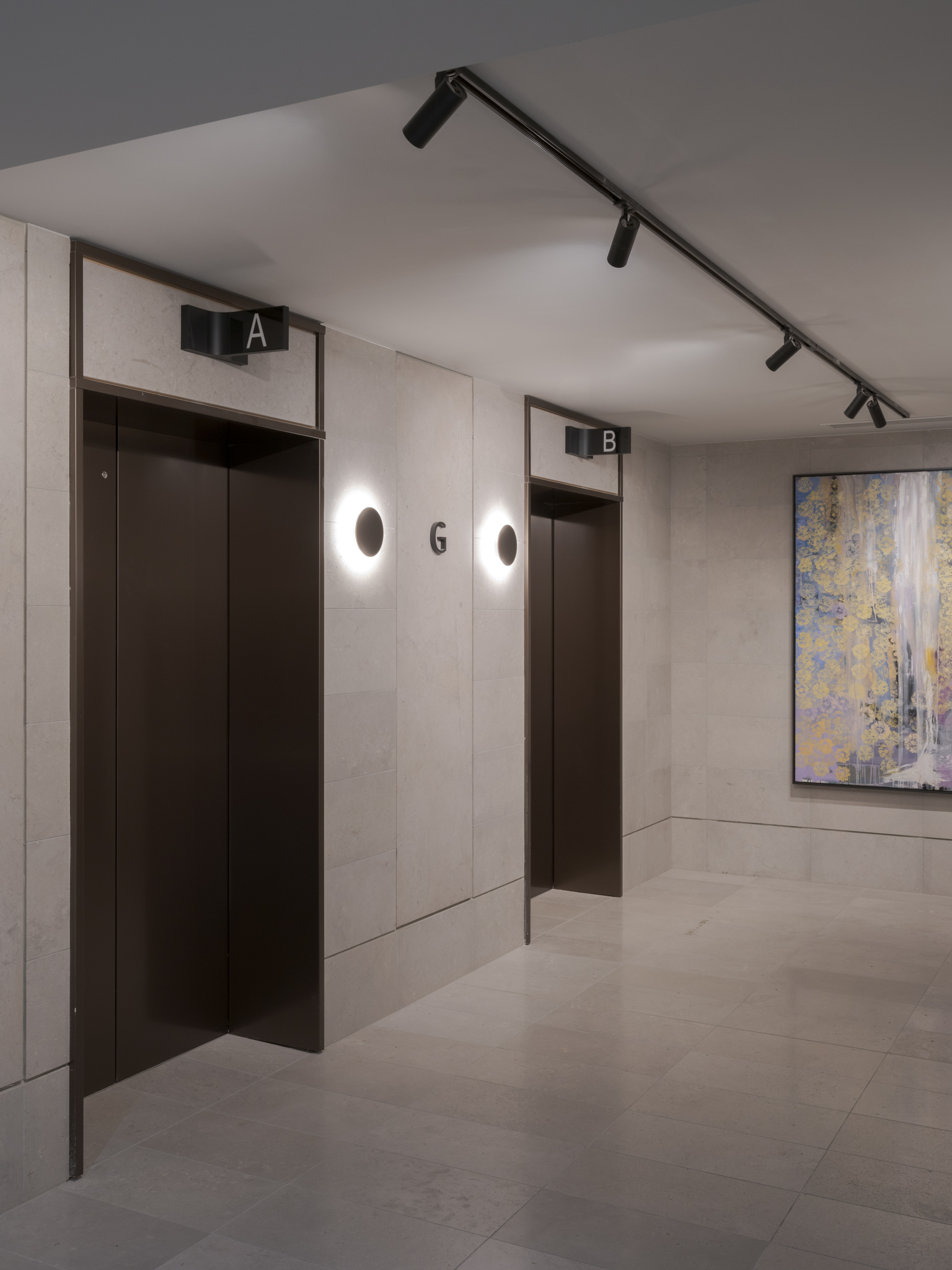 A unique feature of the development is a functional 180-space car stacker system, accessible via a grand porte-cochere which is finished in such a way that it becomes an extension of the residential and commercial lobby spaces.